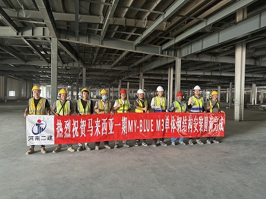 河南二建集團鋼結構有限公司馬來西亞一期MY-BLUE M3單體鋼結構吊裝圓滿完成